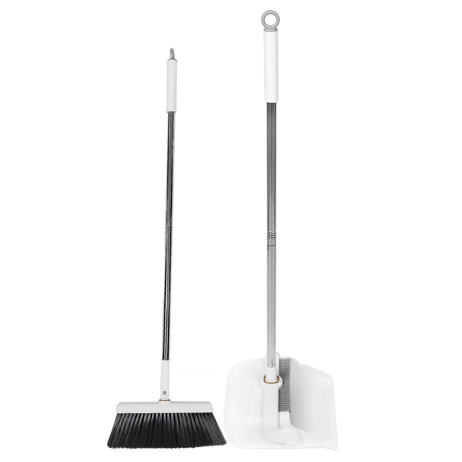 This indoor broom set is for keeping your living spaces clean and tidy. The long handle broom and dustpan set allows you to sweep floors without straining your back. The soft bristles of the broom are designed to pick up even the finest dust particles, while the dustpan with teeth helps to clean the broom easily. Suitable for use in the kitchen, office, or any indoor area, this set ensures a thorough and convenient cleaning experience. Features -Color:White -Material:Plastic -Size:89.00X28.00X3.00cm/34.98X11.00X1.18in -Size:86.00X26.00X24.00cm/33.80X10.22X9.43in -Gentle bristles: the soft bristles are designed to be gentle on all types of flooring, effectively sweeping up dust and hair without scratching surfaces -Compact and easy storage: the broom and dustpan set is compact and easy to store, fitting neatly into small spaces and ensuring storage -Handle length: the broom and dustpan set comes with a detachable handle that can be adjusted to different lengths, catering to various user heights -Easy hair maintenance: the broom's design prevents hair from sticking, making it easy to clean and maintain after use -Time saving comb design: the innovative comb design on the dustpan makes it easy to remove dirt and dust, saving time and effort during cleaning Package list: 1 x set of Broom and dustpan
