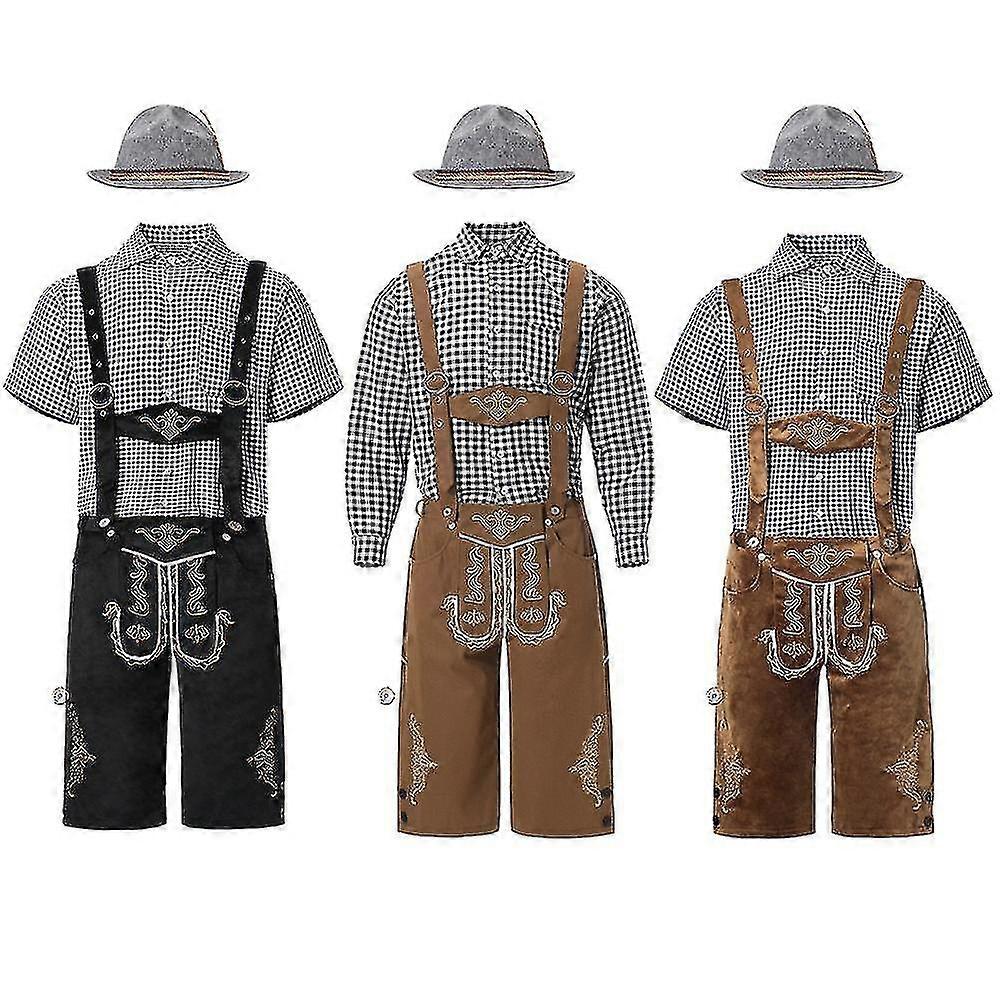 Oktoberfest Costume For Mens 3pcs Set Hat And Plaid Shirt And Suspenders Lederhosen Bavarian Carnival Halloween Cosplay Outfit