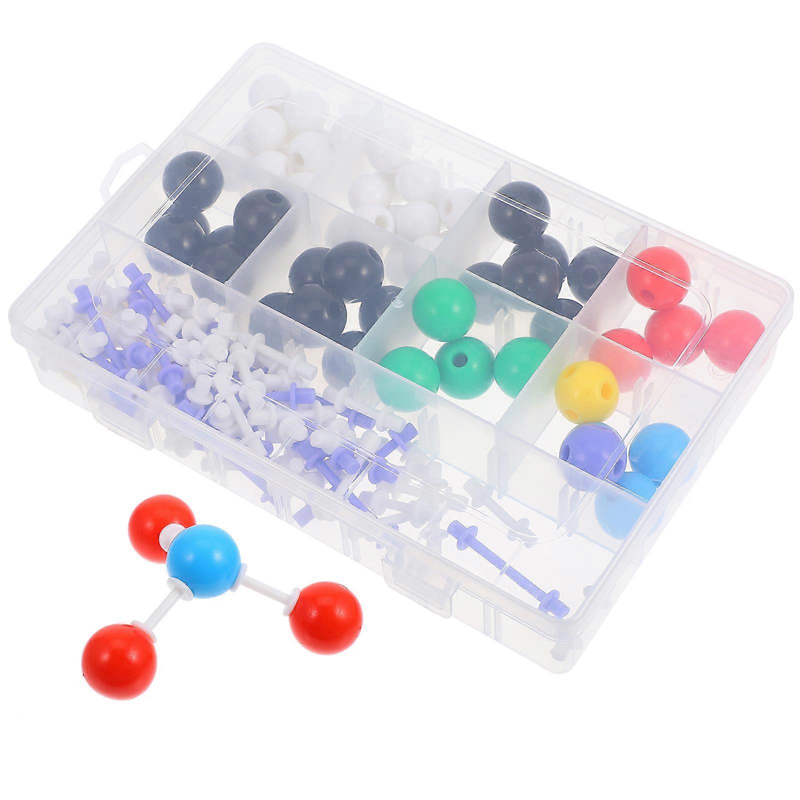 The chemistry molecular model kit is for demonstrating the intricate details of molecular structures. Whether you're a teacher explaining concepts in a classroom or a student preparing for exams, this kit offers a practical approach to learning chemistry. The molecular models can be easily assembled and disassembled, making it a versatile tool for both teaching and studying. Features -Color:Multi -Material:Plastic -Size:2.00X2.00X2.00cm/0.79X0.79X0.79in( balls 1) -Size:1.50X1.50X1.50cm/0.59X0.59X0.59in( balls 2) -Size:4.50X1.00X1.00cm/1.77X0.39X0.39in(connecting ) -Size:3.00X1.00X1.00cm/1.18X0.39X0.39in(connecting bond 2) -Accurate molecular representation: the ballandstick model precisely mirrors chemical molecular structures, facilitating a deeper understanding of molecular makeup -Organic crystal structure display: allows for the demonstration of crystal and organic molecular structures, ' knowledge of molecular shapes -Complete experiment kit: comes with a full set of tools and materials required for chemistry experiments, ensuring students have everything they need for learning -Teacher's instructional guide: includes comprehensive teaching materials, supporting educators in delivering effective lessons on molecular structures - arrangement visualization: uses models to illustrate structures and their arrangements, aiding students in comprehending properties Package list: 59 x 76 x connecting bond