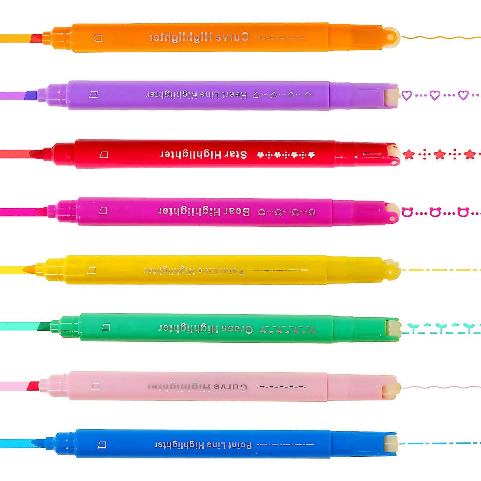 Pack Of 8 Double Tip Roller Pens With Flower Shaped Curves Outlines Plastic Shell For Artistic Writing And Note Taking Multicolor