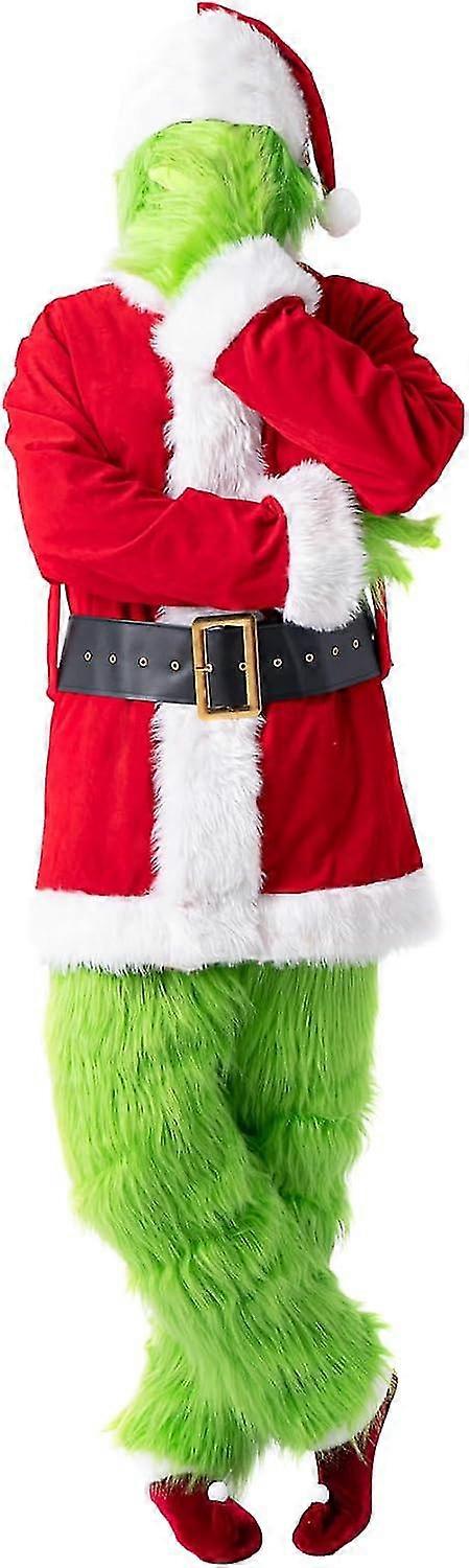 Pafiga Green Big Monster Costume For Men 7pcs Christmas Deluxe Furry Adult Santa Suit Green Outfit