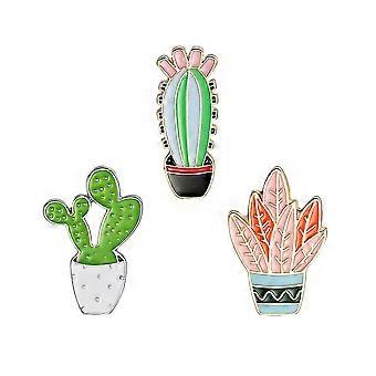 3 قطع / مجموعة الكرتون الصبار النبات المينا شارة بروش دبوس الملابس والمجوهرات ديكور