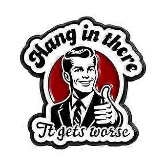 Hang In There It Gets Worse Enamel Pin Funny Snarky Sarcastic Quote Man Thumbs Up Brooch Lapel Badge Jewelry Gift for Friends
