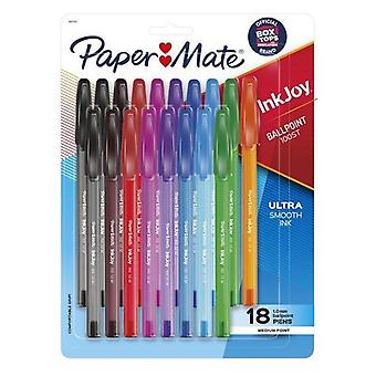 Paper Mate Inkjoy 100 قلم حبر جاف ، وسط النقطة ، ألوان متنوعة 18 قطعة