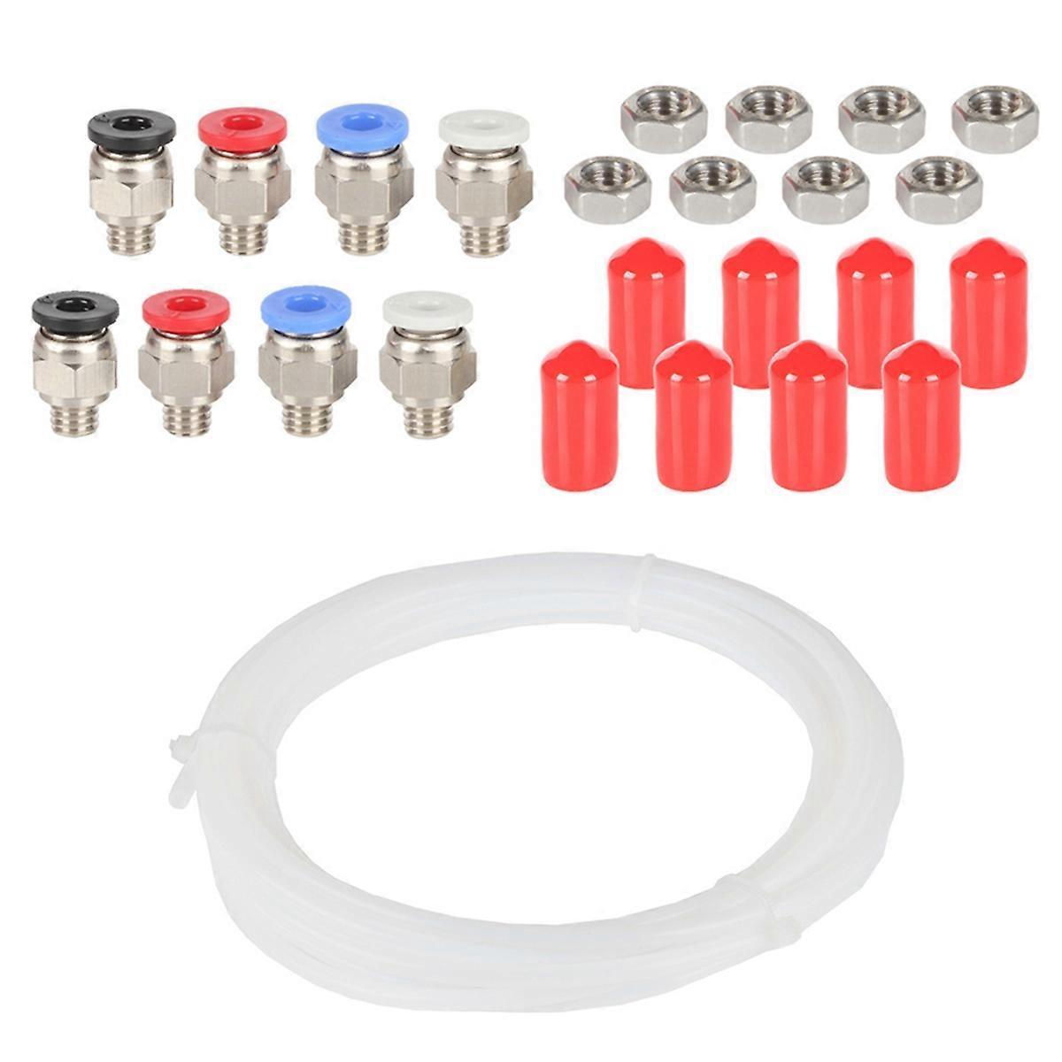 new and high quality. Convenient to DIY dry box. The inner diameter of the tube is upgraded to 2.5MM, sliding more smoothly! Quick plug with nut, easy to lock! One end of the quick plug is straight-through can be connected to the DIY box, the other end of the non-straight-through, to prevent the tube in the quick plug sliding, you can also remove the quick plug, the tube directly to the machine! Color:As Shown Material:Brass + Plastic Package Contents: 8 * Pneumatic Fittings Connector 8 * Nut 8 * Sealing cover 1 * 8m 2.5x4mm PTFE Tube Only the above package content, other products are not included. Note: Light reflection and different displays may cause the color of the item in the picture a little different from the real thing. The measurement allowed error is +/- 1-3cm.
