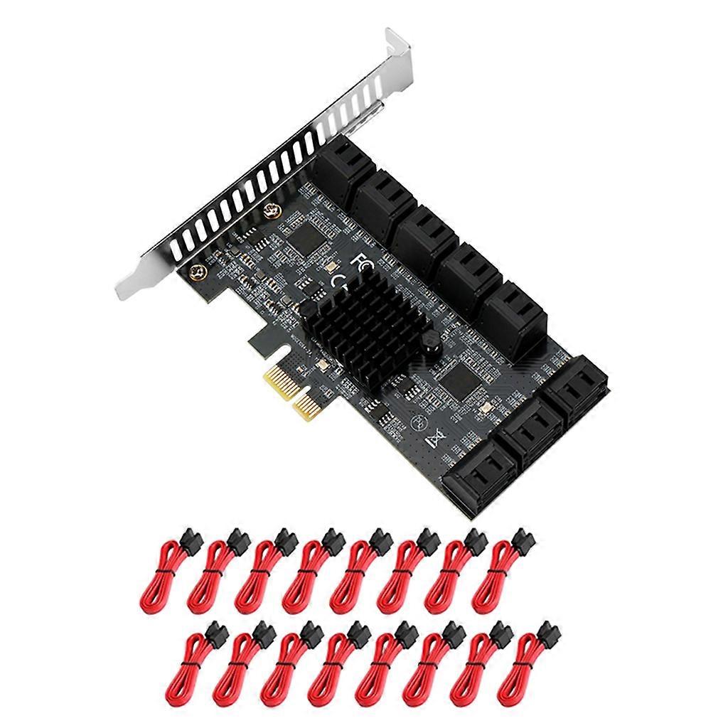 Features: brand new and high quality for pci-experss. Serial ATA 3.0 specification compliance. Interface Bus Type X4 PCI for Express 2.0. The supported communication rates are 6.0 Gbps. 16 self-identifying ports, no need to drive. Hot swap and heat swap. Specifications: Item Name: PCIE 4X to SATA Card Interface: PCI-E 4X Board color: black Cable color: Blue,Red(optional) Interface rate: 6Gbps Function: for chia mining Size: approx. 12.2x12x6.8cm/4.8x4.72x2.68in 4X main control chip: ASMedia1064 x 4 1x main control chip: ASMedia1064 x 1 + JMB575 x 3 System support: WIN10 LINUX UBUNTU Note: Please allow 0-1cm error due to manual measurement. pls make sure you do not mind before you bid. Due to the difference between different monitors, the picture may not reflect the actual color of the item. Thank you! Package includes: 1PC x PCIE to SATA Card 16PCS x Cable
