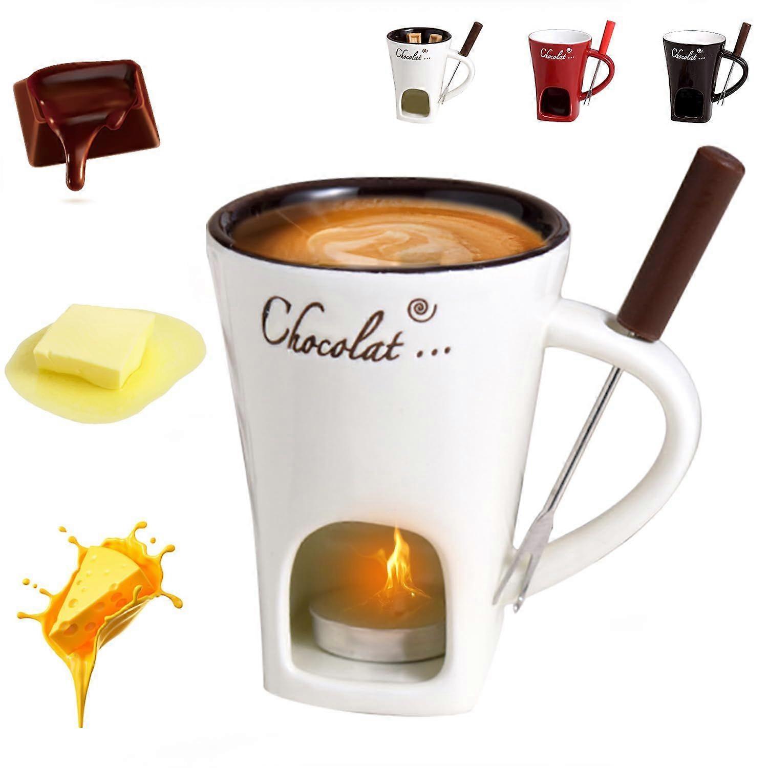 Personal Fondue Set with Serving Fork, Individual-Size Melting Cup for Chocolate and Cheese, Ideal for Romantic Dates Birthdays and Parties, White