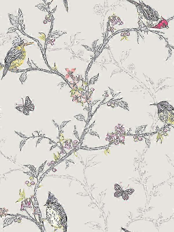 Phoebe Birds Wallpaper-Dove Grey-98081 - Product Details: Stunning birds design wallpaper, Features mica highlights for a glistening effect, 10m long, 52cm wide, 53cm pattern repeat, wallpaper, Easy to apply, Paste The paper wallpaper, Good light fastness, Spongeable, Main colour: Dove Grey, This striking wallpaper features beautiful birds and butterflies amongst an intricate branch and flower design on a soft grey background. The branches feature mica highlights in silver to add a stunning glistening effect. The design is printed on to luxury heavyweight paper to ensure durability and a quality finish.Easy to apply, This wallpaper will look great when used to decorate a whole room or to create a feature wall. Note: Due to the light and screen setting difference, the item's color may be slightly different from the pictures. Please allow slight dimension difference due to different manual measurement. Sold by-YJL official store