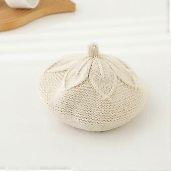 Neulottu baskerihattu kiinteässä karkinvärisessä lämpimässä pipossa tytöille 1-6M hiustarvike
