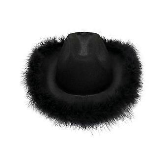 Hattu, musta huopahattu pörröisellä höyhenellä - Leikattu lieri tyylikkääseen ilmeeseen