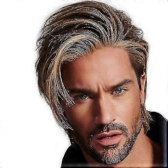 الرجال الذهب براون الطبقات قصيرة على التوالي الشعر الاصطناعية الشعر المستعار