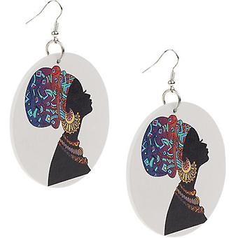 2xRound Dangle Lady Figuuri Afrikkalainen luonnonpuu Dangle Korvakoru Punk Hippinasta