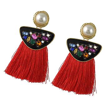 Behomian بيان مهدب الموضوع حجر الراين شرابة تتدلى أقراط الأحمر