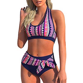 نسائي عالية الخصر فيونكة بدلات سباحة أزهار طباعة بيكيني طقم قطعتين ملابس السباحة