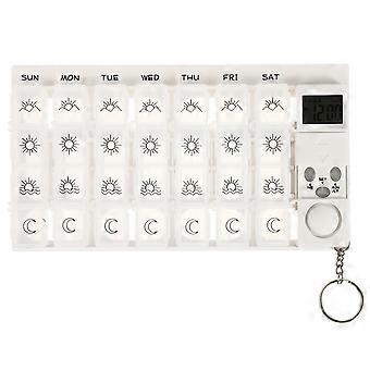 Viikoittainen digitaalisten pillereiden järjestäjä 7 päivää 28 osastoa Lääkelaatikko, jossa on 5 ryhmää Hälytysmuistutus ja valoisa LCD-taustavalo lääkkeiden lisäravinteille