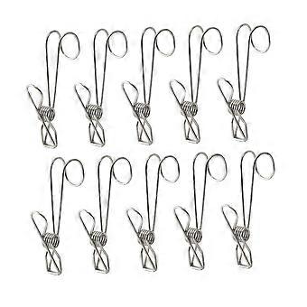 10pcs Stainless Steel Clothespins with Hooks Heavy Duty Metal Hanging Clips for Clothes Curtains