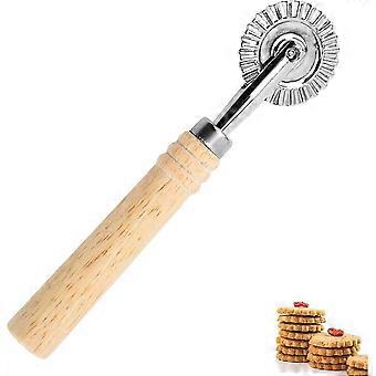 قاطع أسطوانة المعكرونة المستدير مع مقبض خشبي فضي مخدد يموت الضغط لآلة رافيولي المطبخ (1 قطعة)