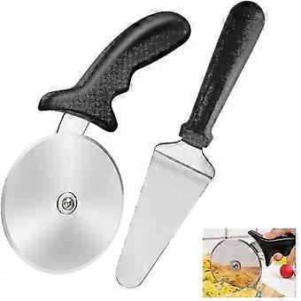 Pi A Pyöräleikkuri ja lapiosarja - Ruostumattomasta teräksestä valmistettu pizzaleikkuri ergonomisella kahvalla, helppo puhdistaa, monikäyttöinen keittiötyökalu
