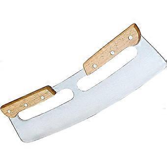 2025 Pizzaleikkuri keinuvivulla, ruostumattomasta teräksestä valmistettu teräveitsi, jossa kaksinkertainen puinen kahva ja muovisuojus, suuri pizzaleikkuri/silppuri - 14 tuumaa