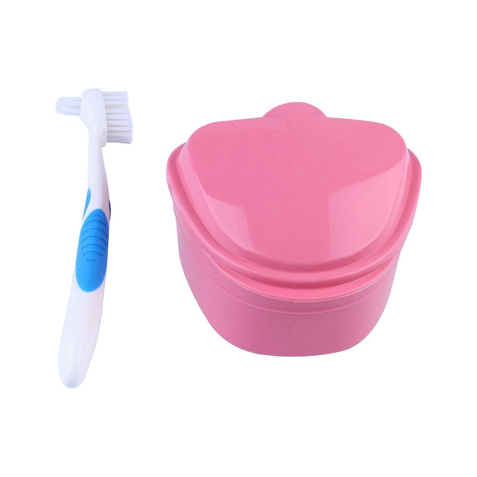 Plastic Denture Case for Storage with Brush 2Pcs Red Soaking Box
