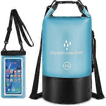 20L Roll-Top Compression vedenpitävä kuivapussi puhelintaskulla, joka pitää varusteesi kuivana (sininen)