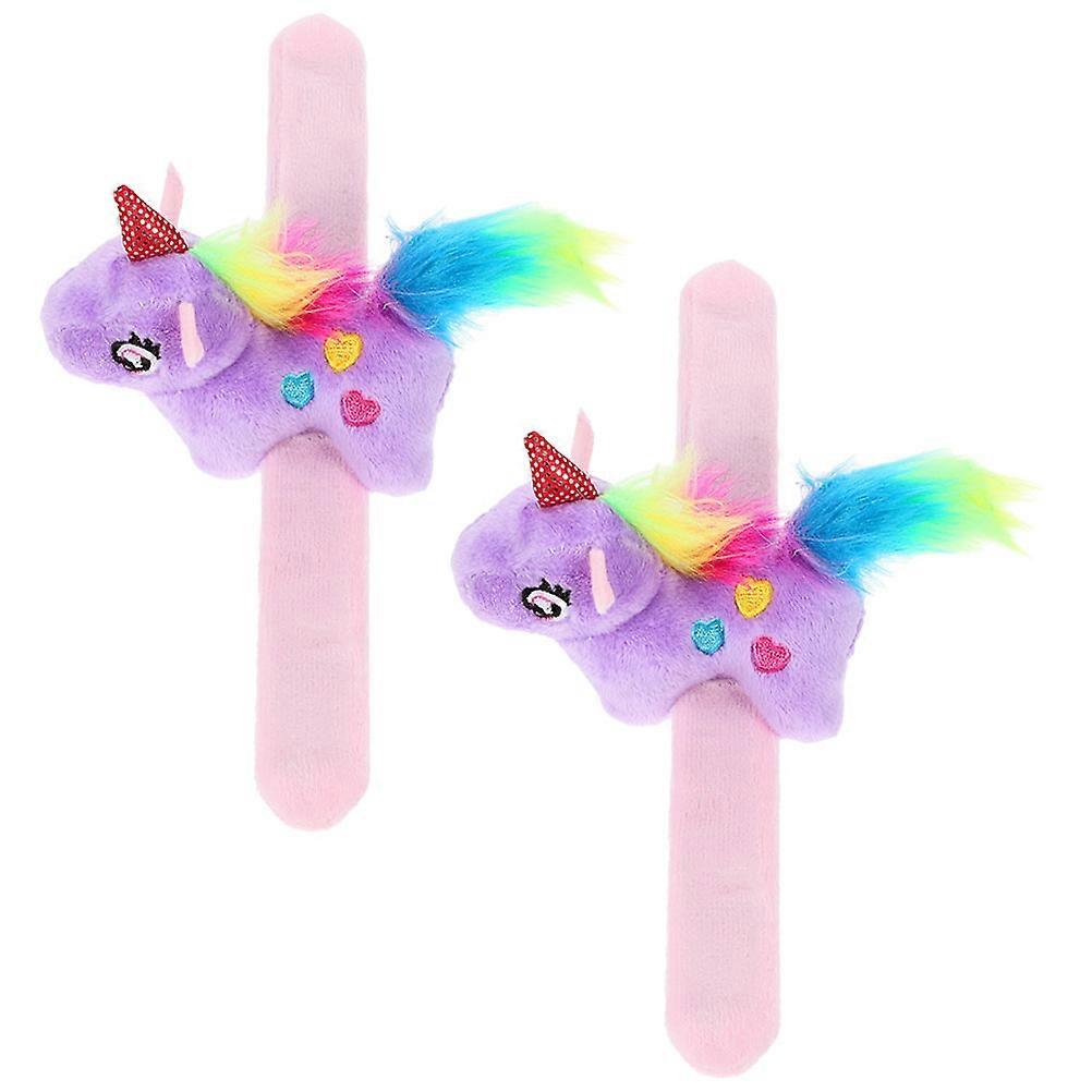 Plush Unicorn Slap Bracelet Game Activities Cartoon Unicorn Shape Multi Function 2Pcs