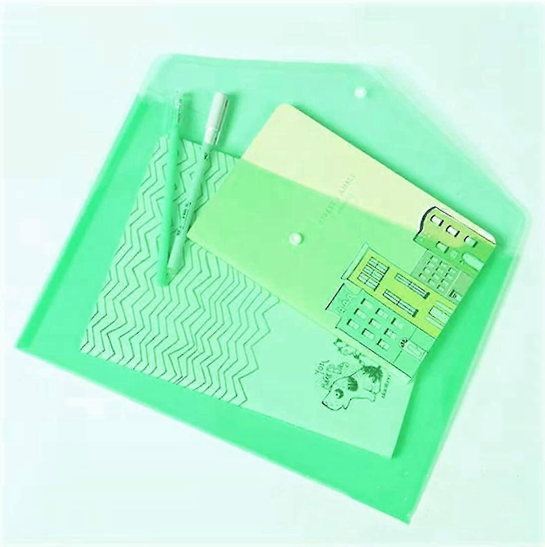 Poly Envelope 12 Pcs Document Envelopes with Snap Button Quality Clear Document Folder for A4 Size (Green)