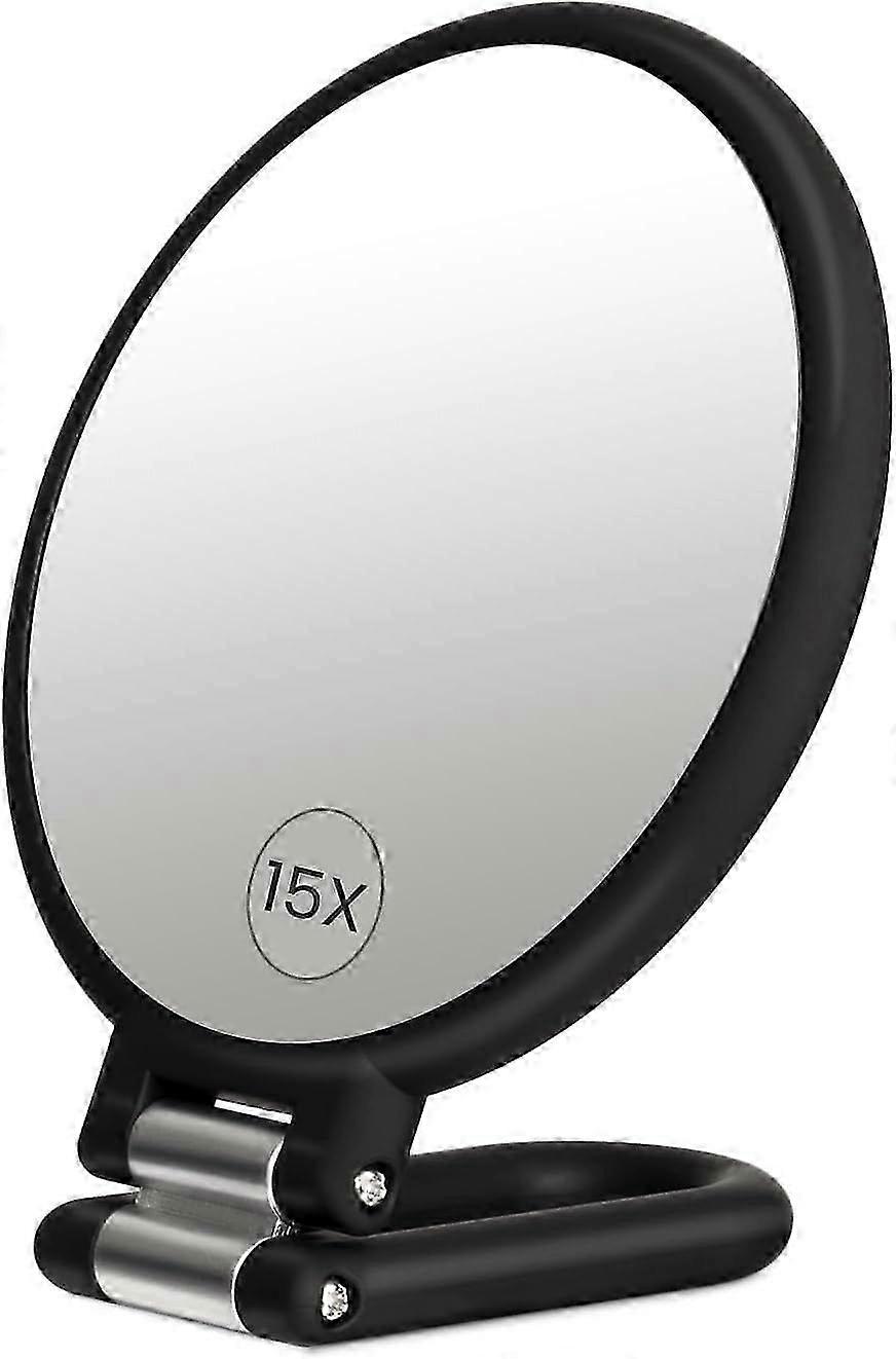 Portable Double-Sided Handheld Makeup Mirror with 1X 15X Magnification and 360�� Folding Handle