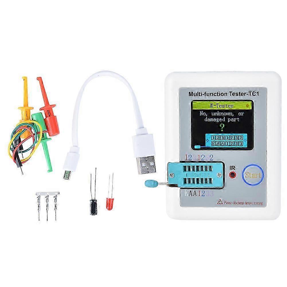 Features: 1. Widely used to detect NPN and PNP transistors, capacitors, resistors, diodes, transistors, N-channel and P-channel MOSFETs, IGBTs, JFETs, triacs and batteries. 2. Can be used to detect infrared waveforms and Zener diodes 3. This tester can measure voltage 4. Built-in lithium battery, it has long battery life 5. With infrared decoding and automatic calibration Specification: Condition: 100% new Display: 1.8 inch TFT screen Diode Range: