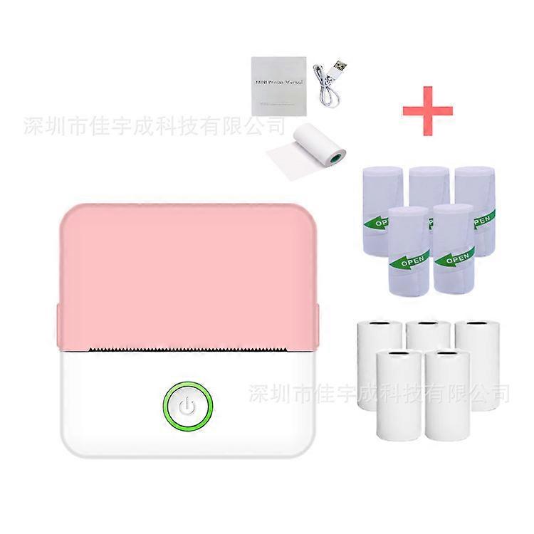 Portable Thermal Printer with 10 Rolls Paper for Printing Diaries, Photos, Notes, Memos Pink