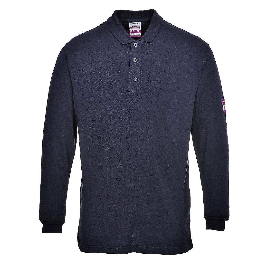 Introducing the Portwest FR10 Flame Resistant Anti-Static Long Sleeve Polo Shirt, a premium choice for professionals seeking both protection and style in cooler weather conditions. Specifically designed for workers in industries exposed to heat, this polo shirt combines functionality with a sleek design. It features a 3-button placket, elegantly finished with a ribbed collar and cuffs, ensuring a comfortable fit and a polished look. The inherent flame-resistant qualities of the fabric are engineered to maintain their integrity wash after wash, offering enduring protection against radiant, convective, and contact heat.