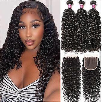 Water Wave Human Hair Bundles Brazilian Virgin Hair with 4x4 Lace Closure Wet and Wavy Texture Natural Hairline