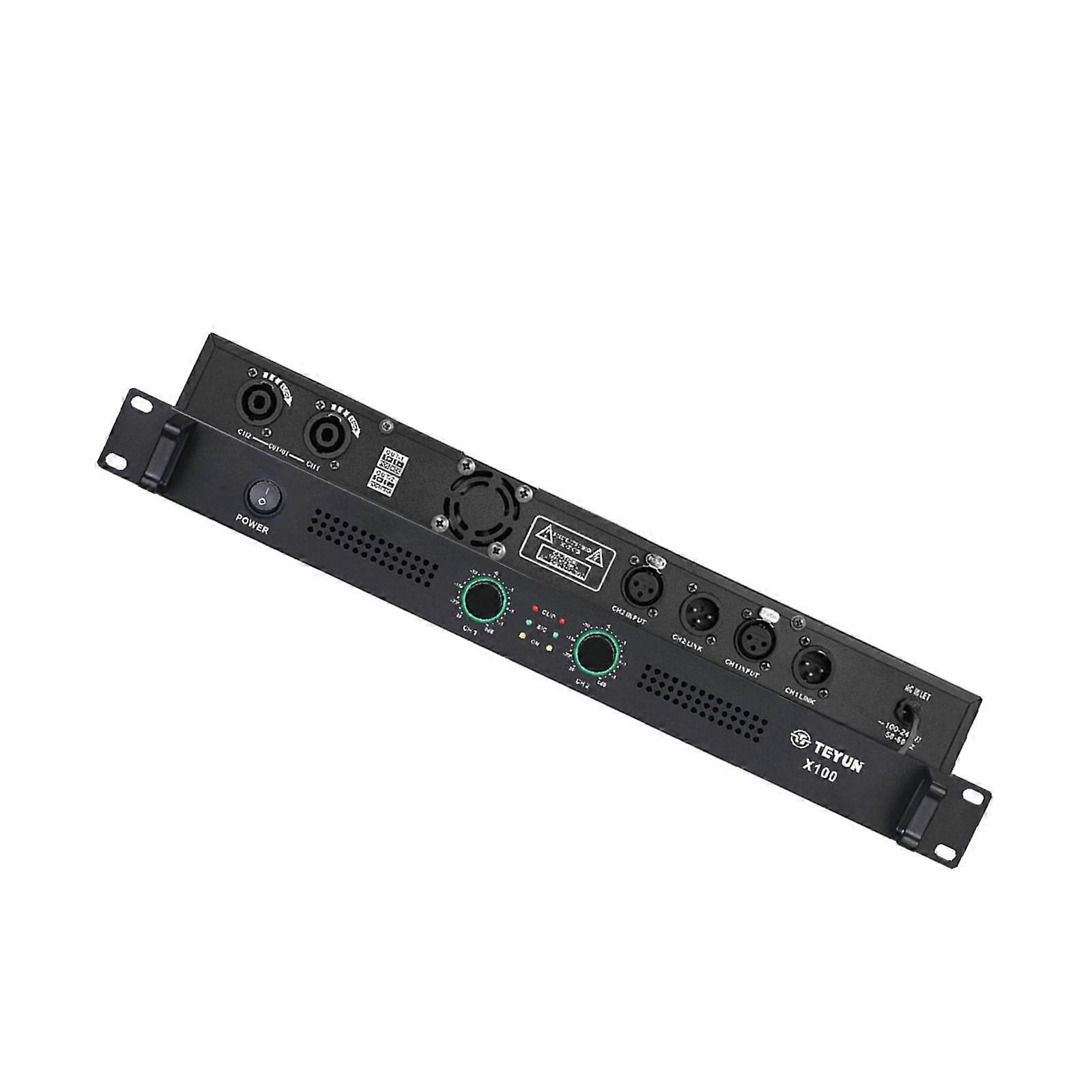 Description: 【High Performance】This amplifier provide stable and excellent audio performance, Let you enjoy a high quality music experience. 【High Power Output】The high power design ensures powerful audio output, which can bring shocking sound effects to the audience whether in large scale stage performances or outdoor activities. 【Good Heat Dissipation】The panel of Amplifier uses internal circuit bottom heating, it can quickly low the temperature inside the machine, protect the chip temperature from stability. 【Intelligent Protection】Power Amplifier with multi intelligent protections, overheating protection, short circuit protection etc. 420mm thickness, thin and light body, fashionable and beautiful, easy to carry. 【Application】Amplifier is suitable for home theater, KTV, outdoor performances, bars, wedding activities, or stage performances, etc. Specification: Material: Metal Sensitivity: 0.775V Audio Frequency Response: 20HZ-20HKZ±0.25db Damping: ≥800 SNR: >100dB Impedance: 20K/10K Transient Response: 30V/US Crosstalk: 60d/ 1KHZ Size Chart: 48.4cmx21.7cmx4.4cm/19.06inchx8.54inchx1.73inch Package Includes: 1 Power Amplifier (EU Adapter) Note: Please allow slightly errors due to manual measurement and different monitors.