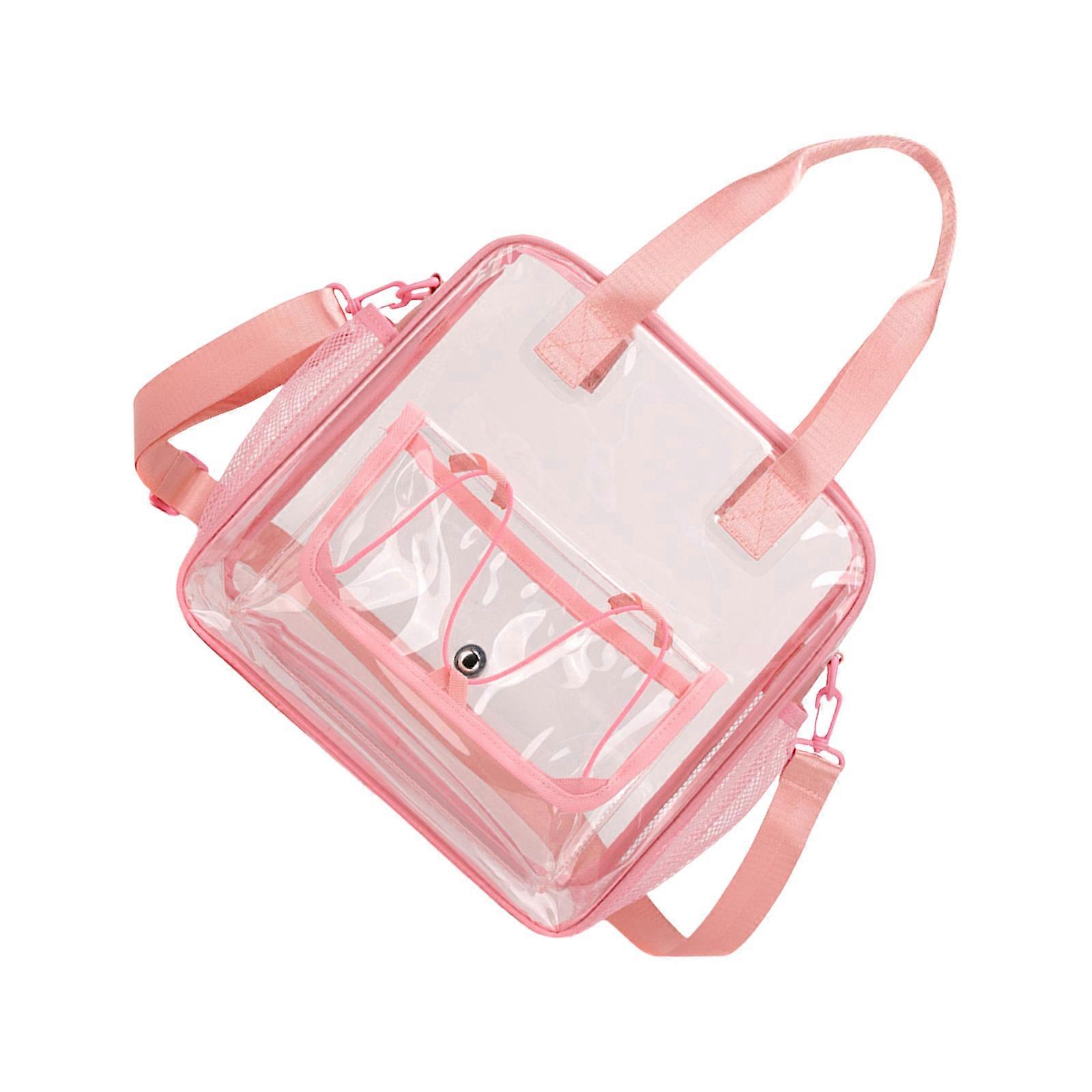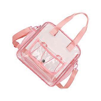 Practical Transparent PVC Storage Bag For Travel Sports Event Large Capacity Organizer With Comfortable Handle Pink