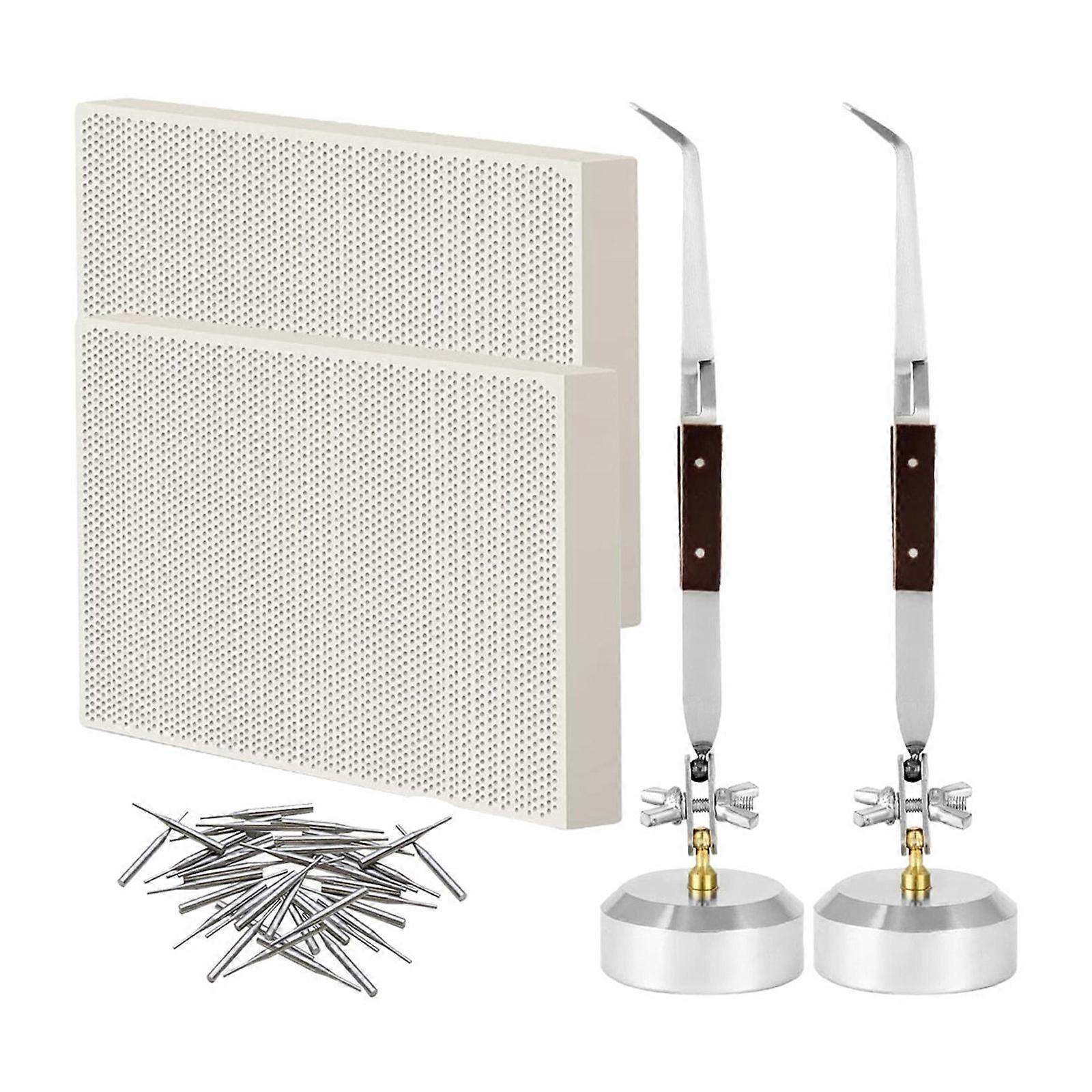 Features: This 24piece welding honeycomb board jewelry tool set features quartzs work surfaces for heat resistance and stability, ideal for intricate soldering tasks in professional jewelry crafting. Equipped with safety accessories, this set ensures secure component alignment and organized workspaces efficiency. Designed for metalwork professionals requiring tool for delicate metal joining and detailed jewelry assembly projects. Perfect for benchwork in studio environments or on the go repairs, its quartzs welding platform withstands repeated torch applications while preventing materials warping during intricate filigree work. The quartzs construction outperforms traditional wood/metal boards with corrosions resistant properties, making it essential for jewelers prioritizing workspaces longevity and thermal safety. Specifications: Component: quartzs Welding Board Size: Approx. 3.54x5.31inch(9x13.5cm) Package Includes: 2x Welded Honeycomb Board 2x Jewelry Making Pliers 20x Fixed Pin note: Please allow 1-2cm errors due to manual measurement. Due to the differences between different monitors, the picture may not reflect the actual color from the item.