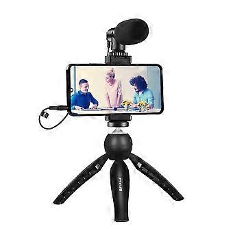 PULUZ Live Broadcast Smartphone Video Vlogger Kits Microphone + Tripod Mount + Phone Clamp Holder (Black)