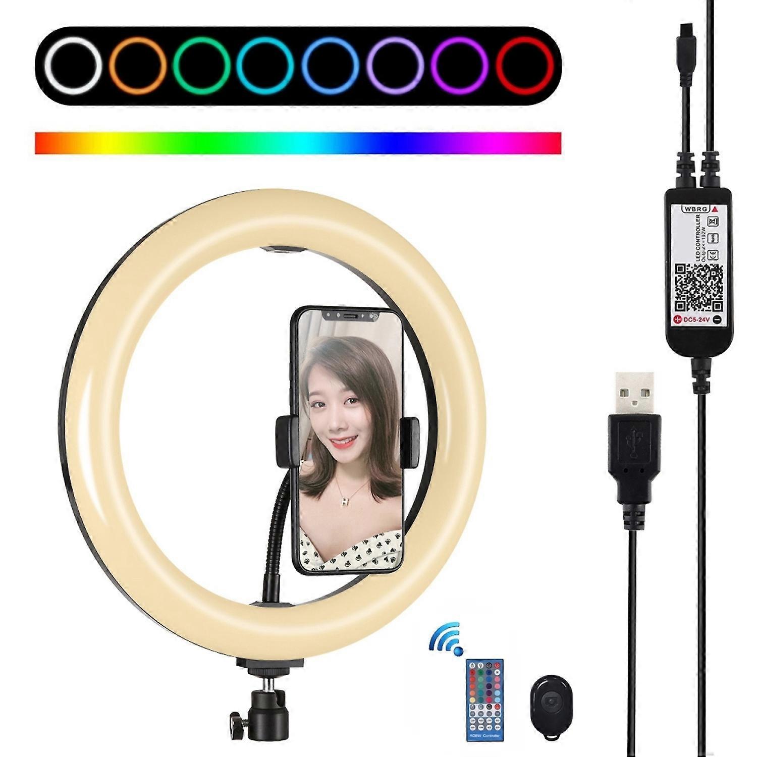 PULUZ PU455B 26cm RGBW LED Ring Light USB Photography Video Lamp with Phone Holder and Remote Contro
