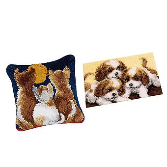 Puppy & Kitten Latch Hook Kits Pillows Making Material Package for Beginners