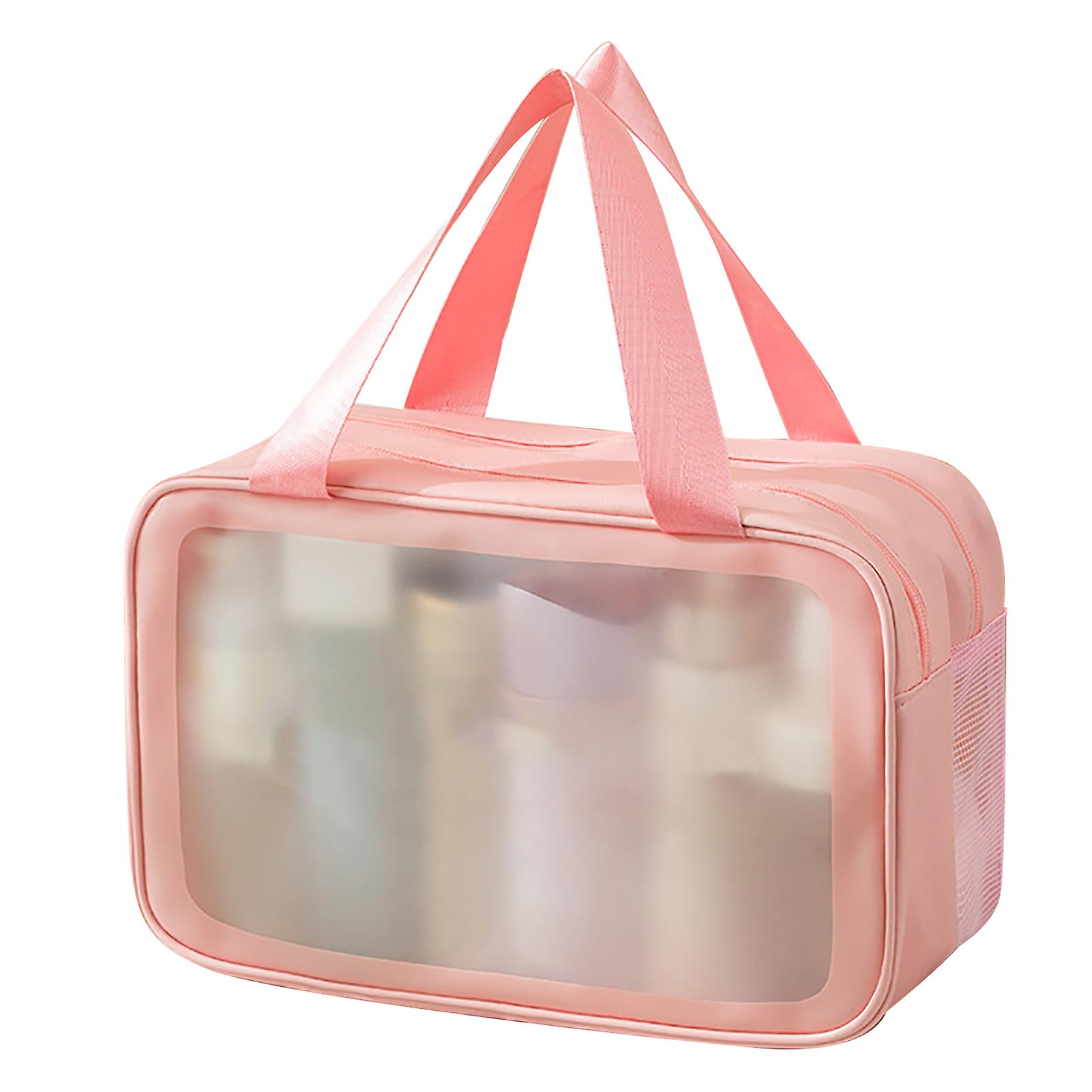 Travel Makeup Bag Portable PVC Double Layer Waterproof Wet Dry Separation Toiletry Bag with Increased Capacity Pink