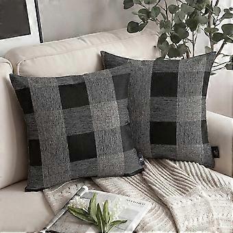Vuoden 2025 lomatarjousvalikoima Phantoskooppi Buffalo Checker Plaids -tyynynpäällinen, koristeellinen heittotyynynpäällinen sängylle ja sohvalle, 45 x 45 cm, musta ja harmaa, 2 kpl
