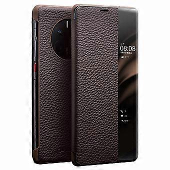 QIALINO For Huawei Mate 50 Pro 4G View Window Genuine Leather Folio Flip Phone Case Touch Slide Butt