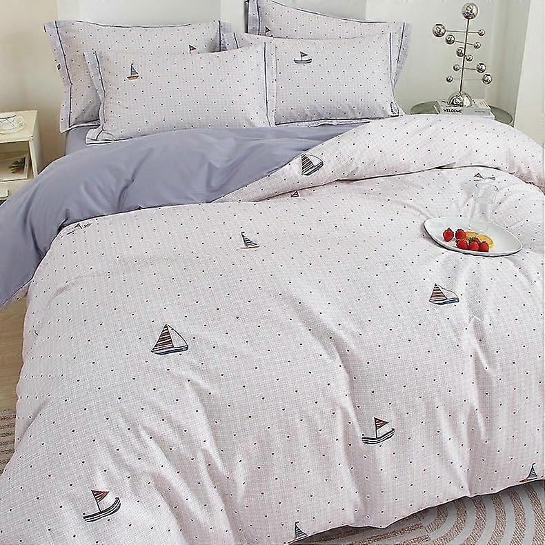 Queen Sheets Set Grey 1.8m 4Piece Bedding Set With Zipper And Ties Oversized Bedspread 1 Flat Sheet 2 Matching Shams