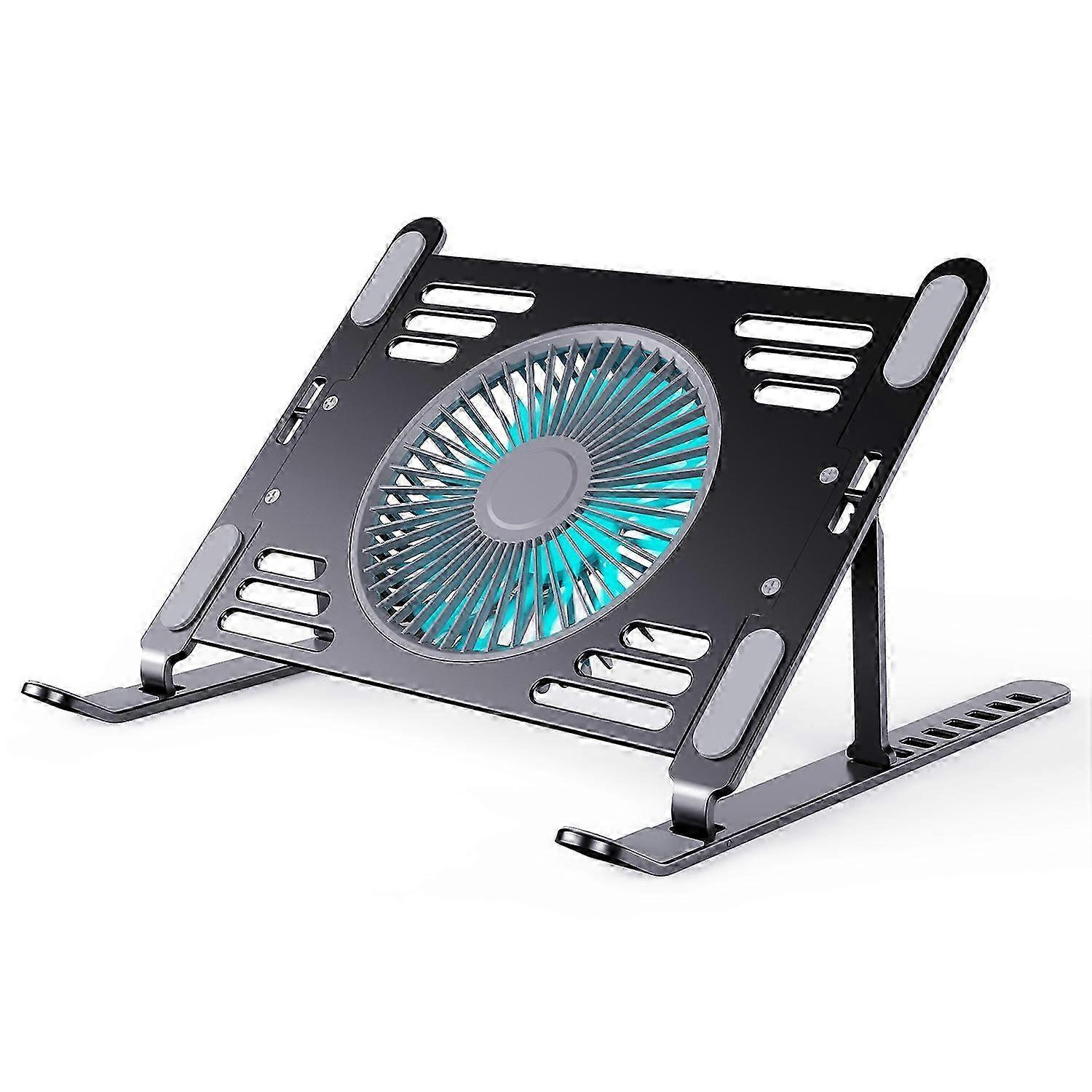R-JUST HZ44 Foldable Height Adjustable Laptop Cooling Fan Base Metal Notebook Cooler Stand - Black