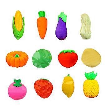 12 kpl hedelmä- ja vihannespyyhekumisetti mini 3D-sitruuna-, tomaatti-, munakoiso- ja lyijykynäpyyhekumi luokkahuoneen palkintoihin, lahjoihin, tarvikkeisiin, koulunkäynnin juhliin