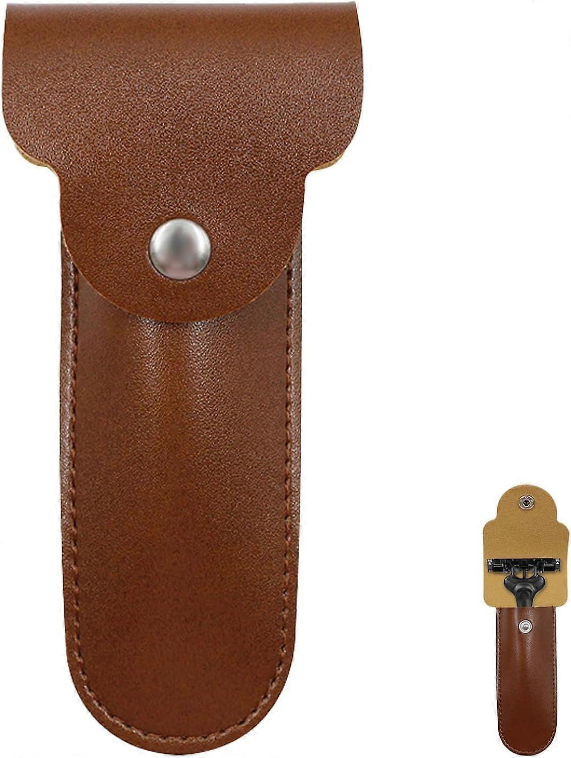 Razor Case Portable Leather Razor Case Travel Razor Case for Storage and Transport of Your Razor (Brown)