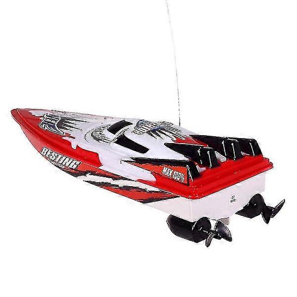 Experience high-speed RC racing with this powerful twin-motor boat. Features a striking red design and a fluid dynamic shape for reduced water resistance and enhanced speed. Constructed from durable ABS material. Specifications: Material: Plastic Color: Red Size: 33x11x9cm Power: 4.8V Battery, 9V remote control battery. Perfect for outdoor water play and racing fun.