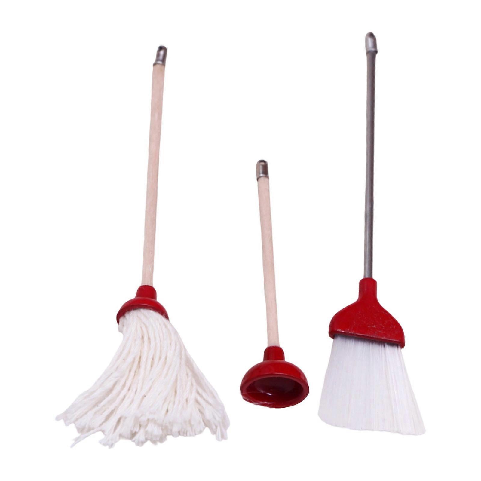 Realistic Cleaning Supplies 3PC Set Including Mop Toilet Tool Sturdy Mixed Materials For Spaces Red