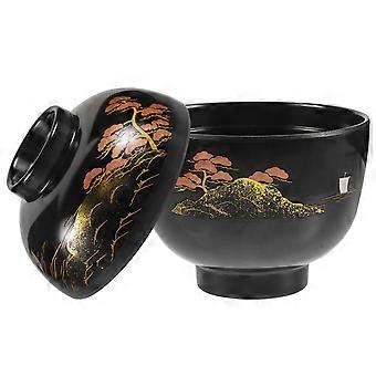 وعاء شوربة على الطريقة اليابانية مع غطاء وملعقة مجموعة مستلزمات المطبخ السوداء 1 مجموعة