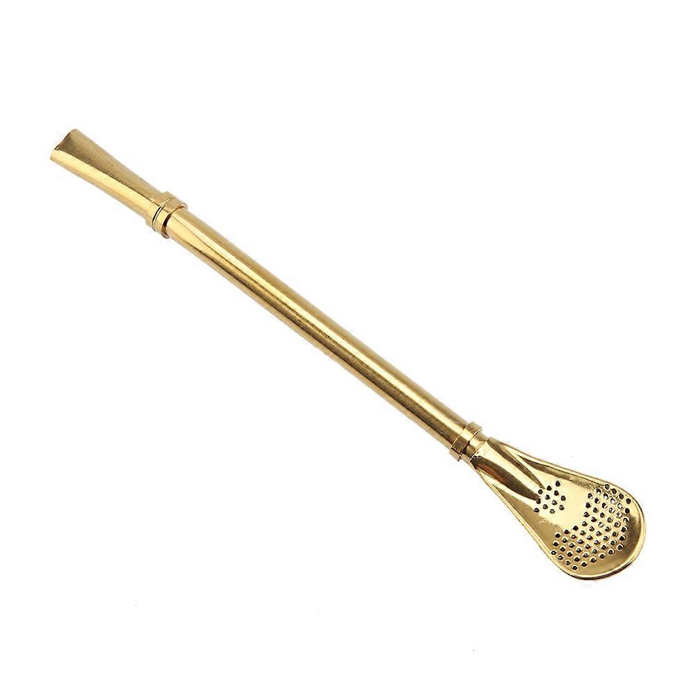 Stainless Steel Metal Drinking Straw Spoon Resuabl Washable Stirring Scoop Gold