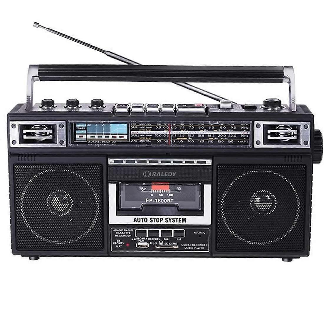 Retro Boombox Cassette Player 80s Style AM Shortwave Radio Portable Tape Recorder With USB Headphone Jack